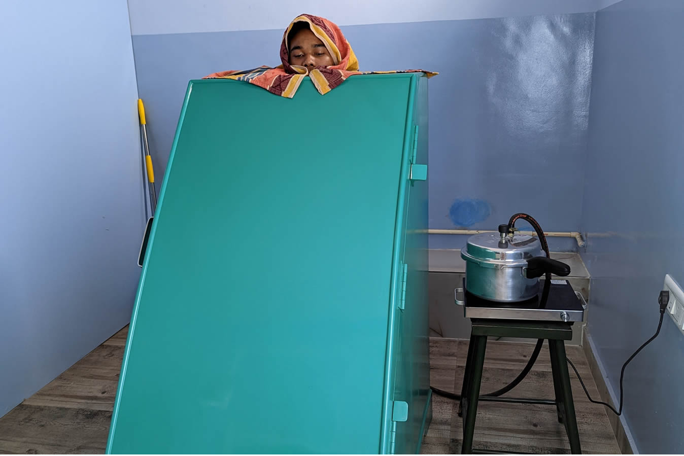 STEAM BATH:- Most important water treatment which induces perspiration in natural way.